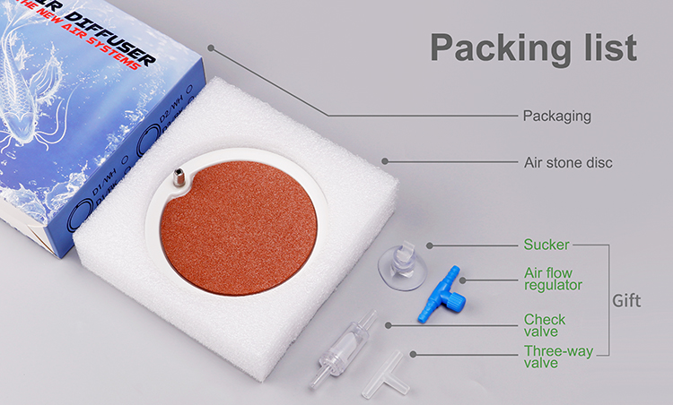 Fine air bubbles diffuser aquarium air stone disc with shell and sucker for hydroponics aquarium tank pump
